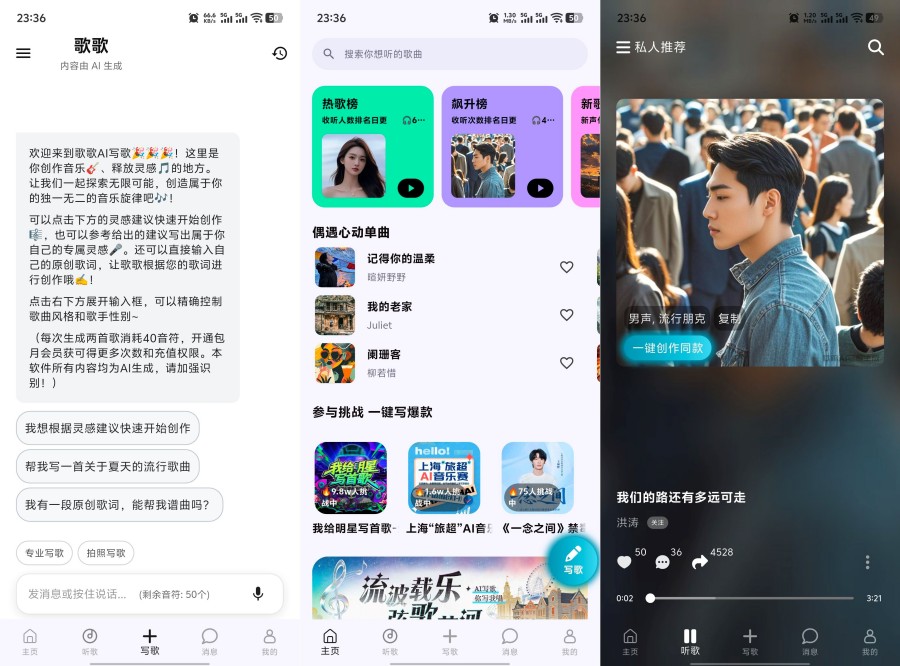 歌歌AI写歌软件app,AI智能写歌神器 ,输入灵感歌词即刻生成原创曲目 。